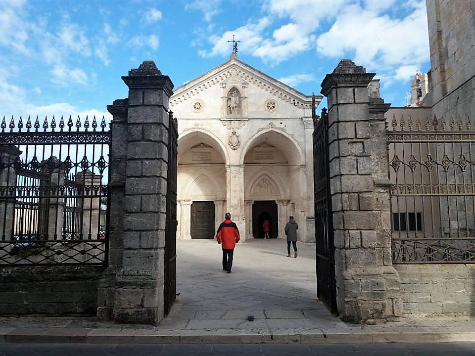 Ancora brulli crinali e dolci rilievi accompagnano il cammino fino alle prime case di Monte Sant’Angelo, ove appare – ai piedi dell’insolito, ma bellissimo, campanile ottagonale – l’unica basilica “santificata” dall’Arcangelo e non dalla mano dell’uomo sulla cui facciata d’ingresso campeggia la scritta: “Terribilis est locus iste. Hic domus Dei est et porta coeli” (Questo è un luogo terribile. Qui è la dimora di Dio e la porta del cielo). Monte Sant’Angelo e la sua “mistica” grotta, sono uno tra i più antichi e importanti luoghi di culto della cristianità mondiale; culto che ebbe origine, secondo la leggenda, nel 493 quando in una grotta qui apparve Mi-Ka-El l’Arcangelo Michele (il Principe delle “Armate Celesti”); da allora, chiunque si recava in Terra Santa nel luogo della Passione e Crocifissione del Cristo, di qui passava e compiva atti di purificazione del proprio animo, chiedendo redenzione per i propri peccati e compiendo, molto spesso, ascetiche veglie alle stelle. Giungere a piedi alla grotta di MI-KA-EL ancora oggi, in un luogo così incredibilmente bello e spirituale, si riescono a provare sensazioni ed emozioni altrove difficilmente vivibili. (Tratto dalla guida “ITALIA Zaino in Spalla” di ©Andrea Perciato)