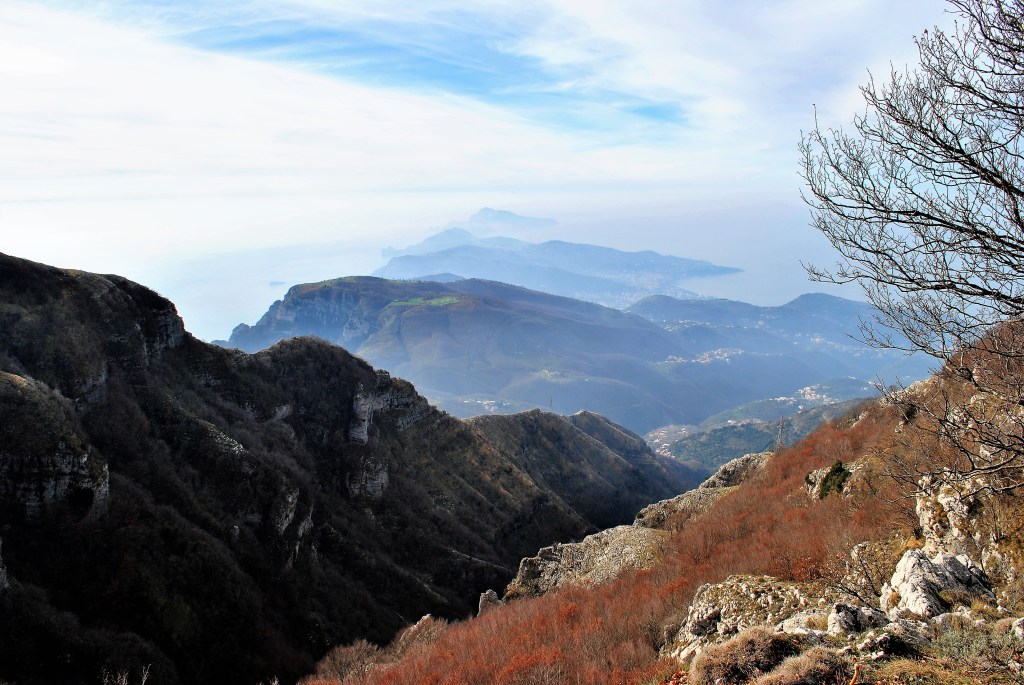 Superati i crinali di monte Cerasuolo compare un’altra balconata panoramica che offre, abbracciando in un’unica visuale, la più bella prospettiva paesaggistica di questi monti con una skyline di Capri che chiude l’orizzonte sullo sfondo. Seguendo la pista che punta a NE, questa termina nuovamente al Piano del Pero, punto di partenza di questo percorso. (tratto dalla guida “CAMPANIA Zaino in Spalla” di ©Andrea Perciato)